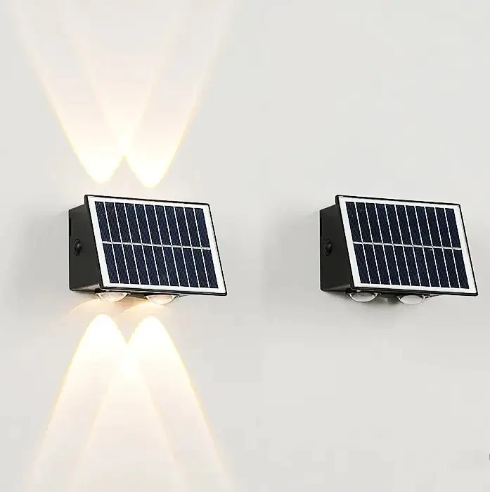 Solar Wall Decoration Light 2+2 Lens Waterproof Up Down Elevation, Pattern, Two Way Wall LED Light for Outdoor (Warm White) -